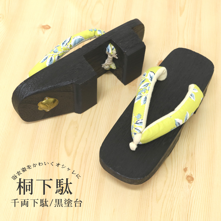 千両下駄 レディース 黒台 鼻緒 黄系 24.5cm フリーサイズ 下駄 削り出し 底 ゴム付き EVA 前部分が斜めになっているので、スッと歩きやすい