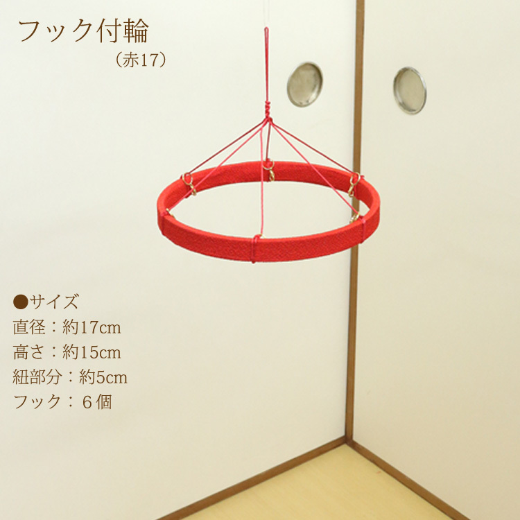 つるし飾りフック付輪 赤 17cm 輪飾り用 つるし雛用 ちりめん細工 桃の節句 初節句 端午 吊るし飾り用 雛飾り用 17cm
