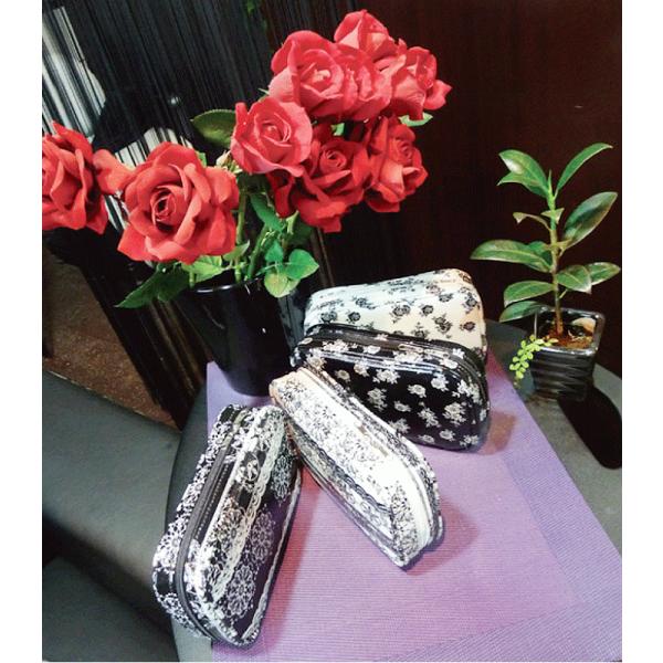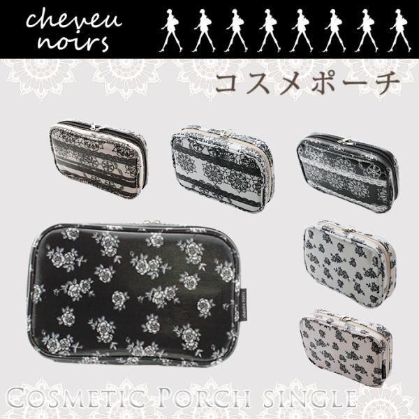 【訳あり】【cheveu noirs】[CPS-01] シュヴ・ノワール コスメポーチ(シングル) コーティング加工で水や汚れにも強い♪スタンドミラー付 内ポケットあり