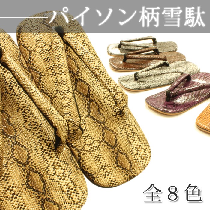パイソン 柄雪駄 メンズ 紳士 エキゾチックレザー調の合成皮革使用 普通の雪駄で物足りない方にお勧め ゴールド/ブラック/ホワイト/キャメル/パープル/ブラウン