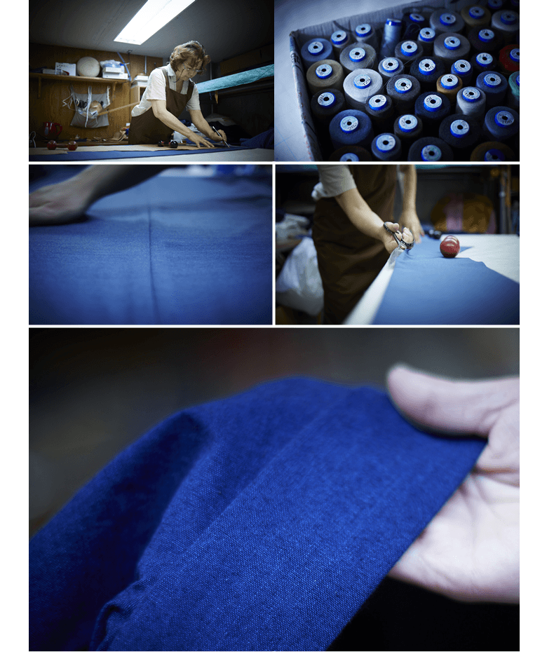 コットンとポリエステルの二層構造糸の生地を使用。