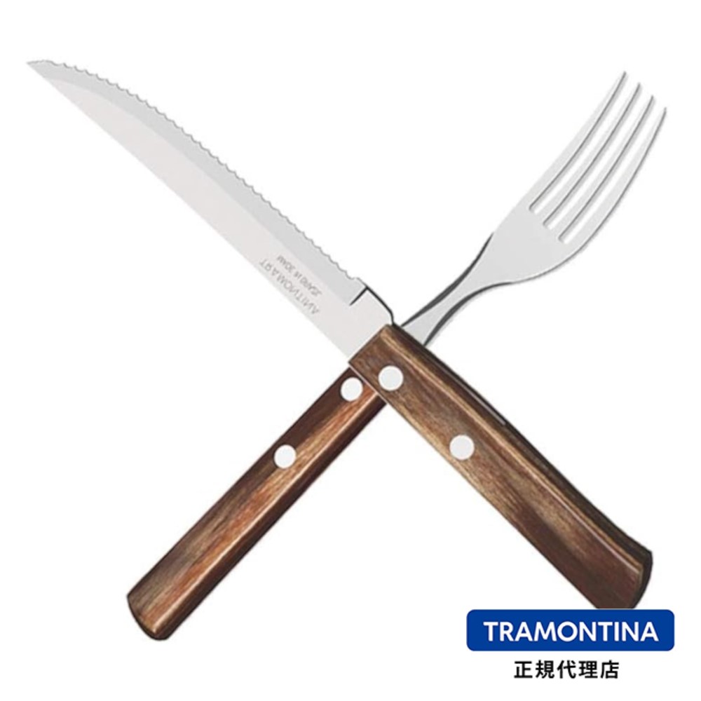 TRAMONTINA トラモンティーナ ステーキナイフ テーブルフォーク ステーキナイフセット 木柄 ポリウッド 2本セット ダークブラウン