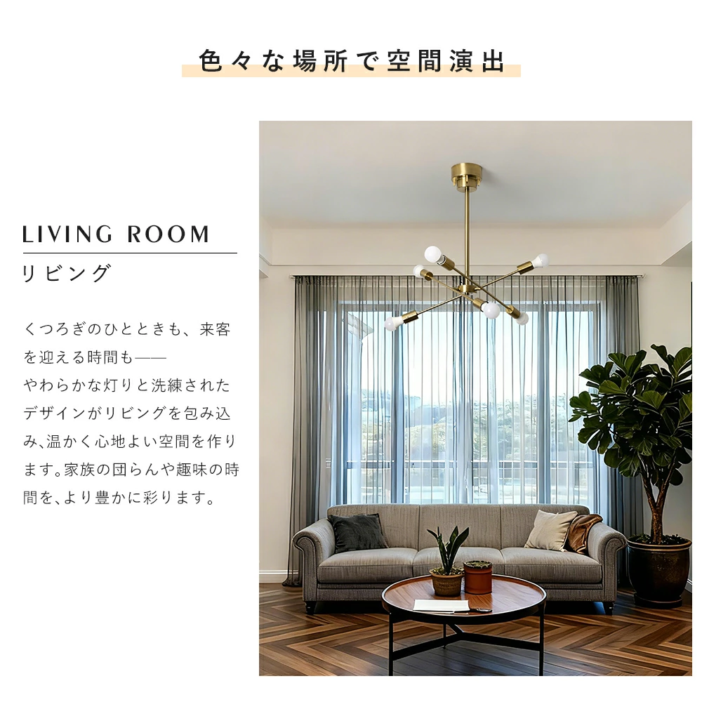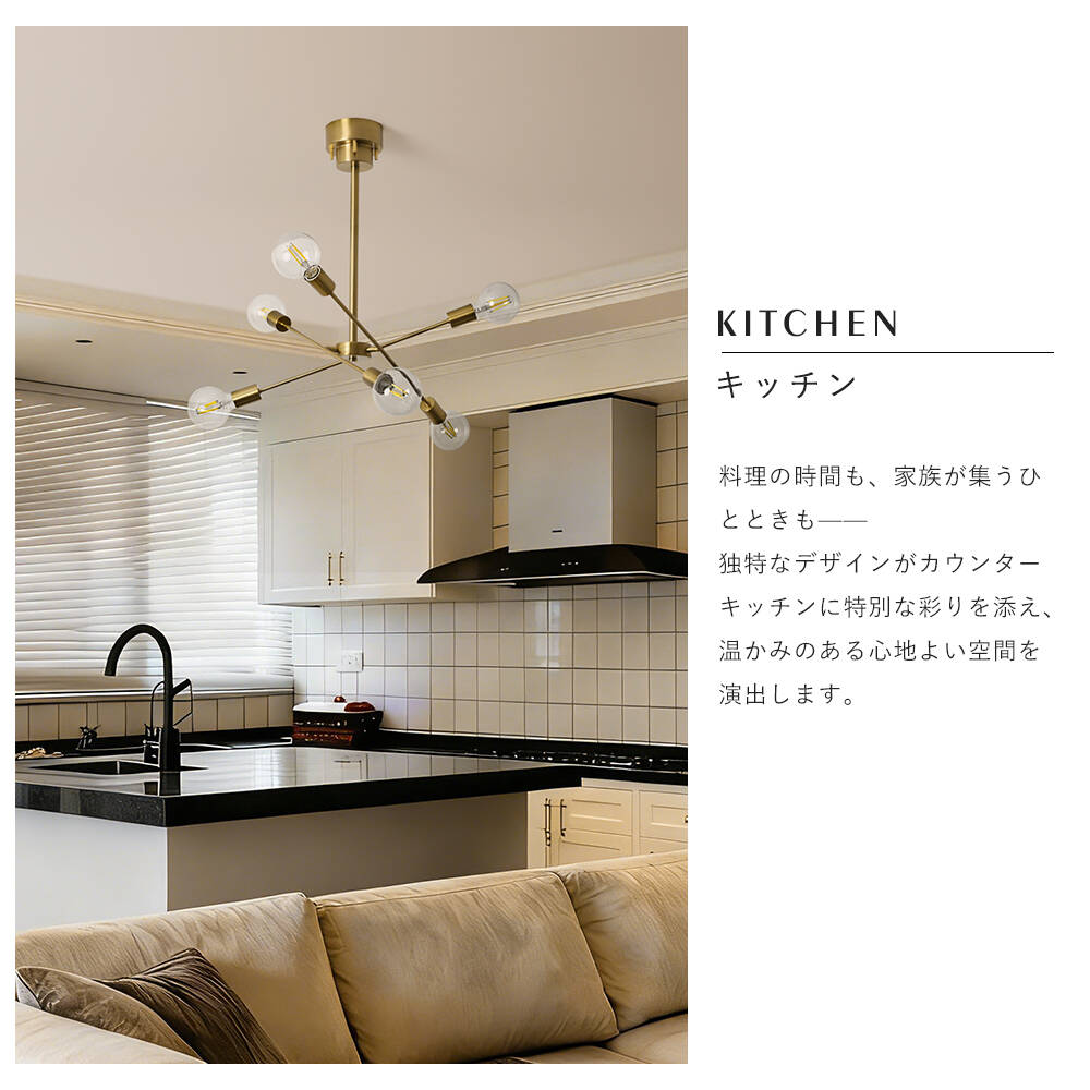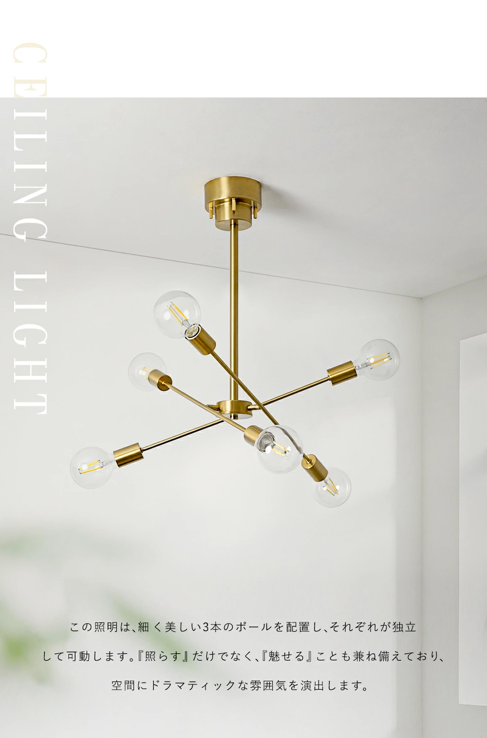 ●【シンプルながらおしゃれ】空中で交差するアームがまるでオブジェのようなデザイン性の高いシーリングライト。照明にこだわりたい方や、ありきたりなデザインに抵抗がある方におすすめしたいシーリングライトです。6つのランプで十分な照明を提供し、ご自宅にふさわしい雰囲気を作り出します。