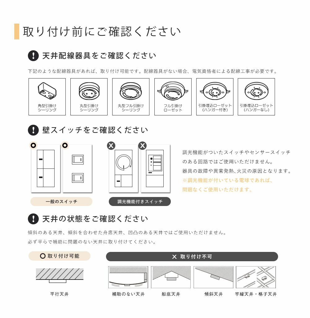 ※傾斜のある天井、傾斜を合わせた舟底天井、凹凸のある天井ではご使用いただけません。必ず平らな天井に取り付けて下さい。