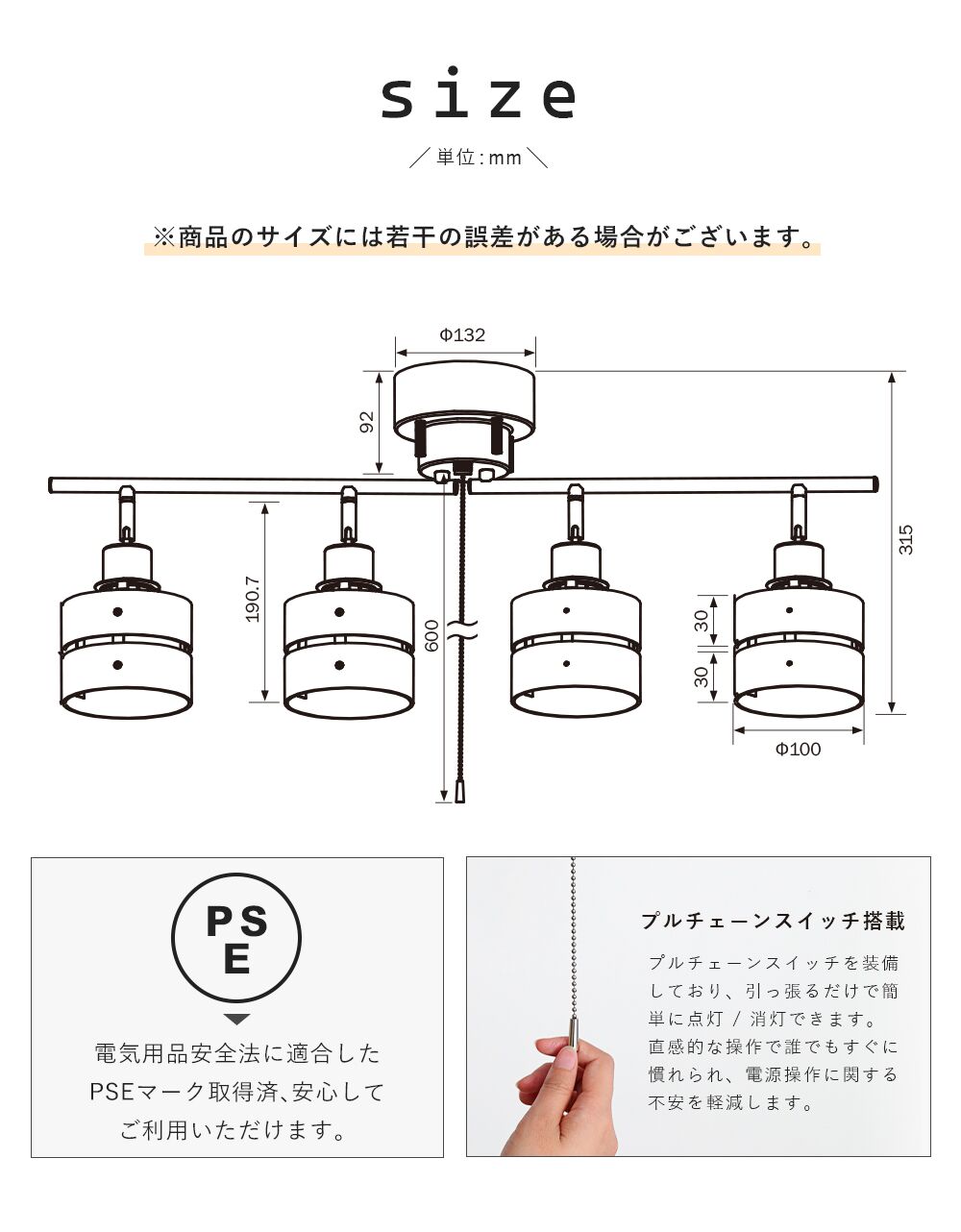 ・使用電球:60W Max × 4Pcs