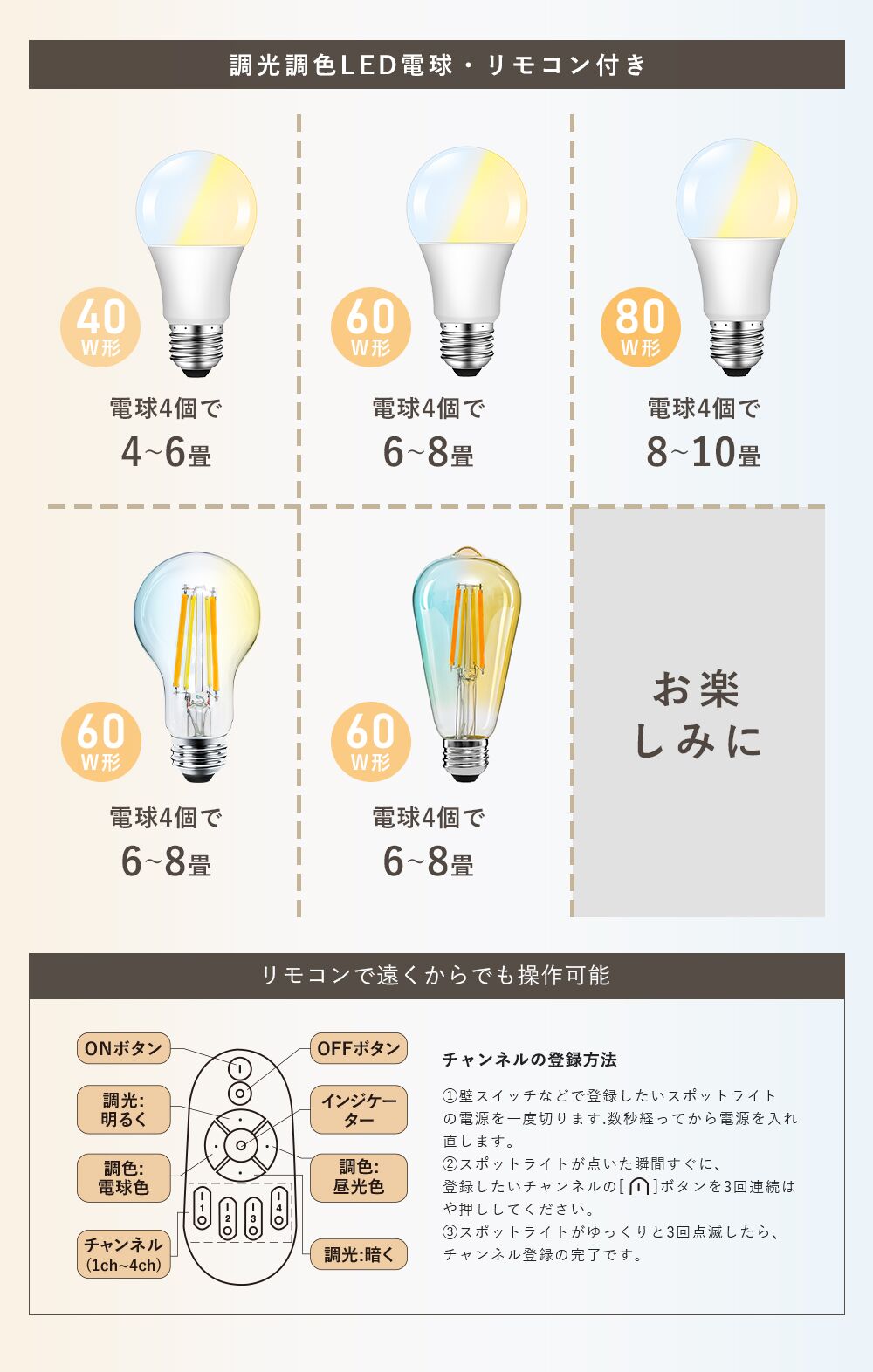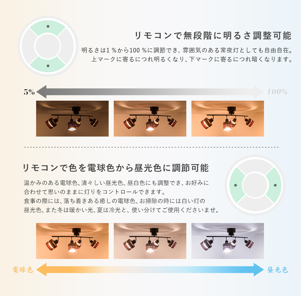 ・色温度:電球色2700K〜昼光色6500K調色可能