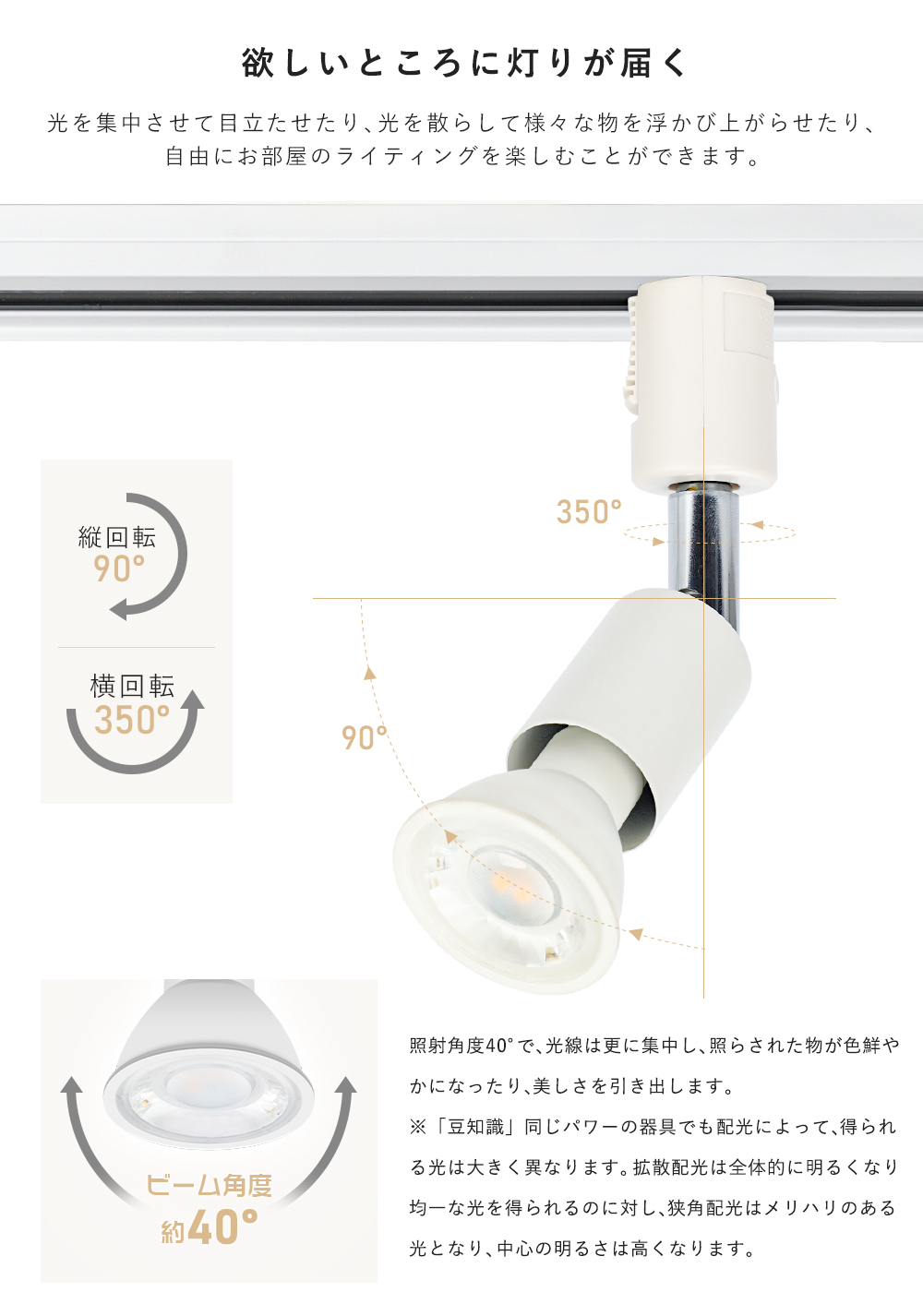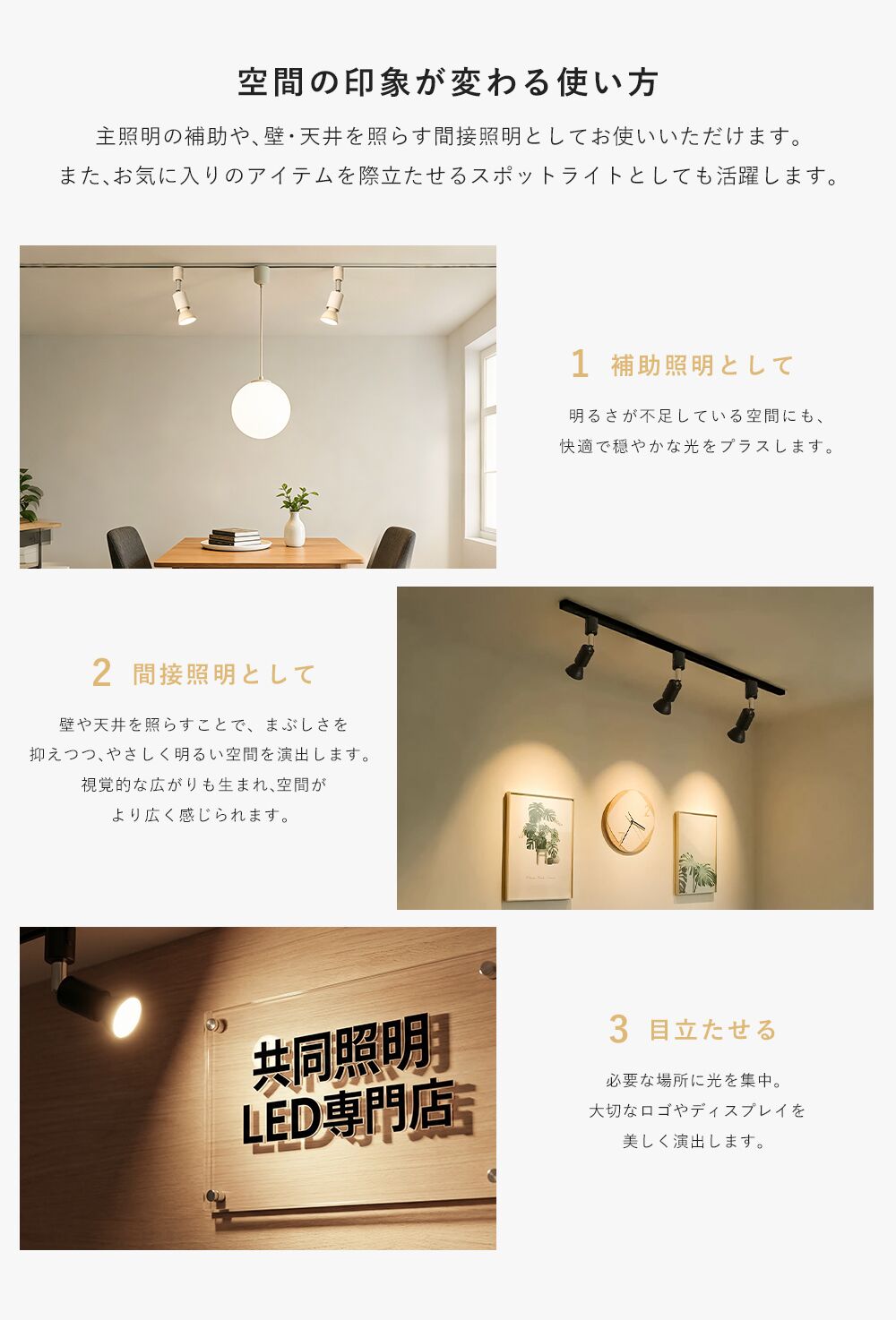 ●【自由自在な角度】:スポットライトのレイアウトを自由に動かすことが出来ますので、インテリア照明やアクセント照明に最適です。