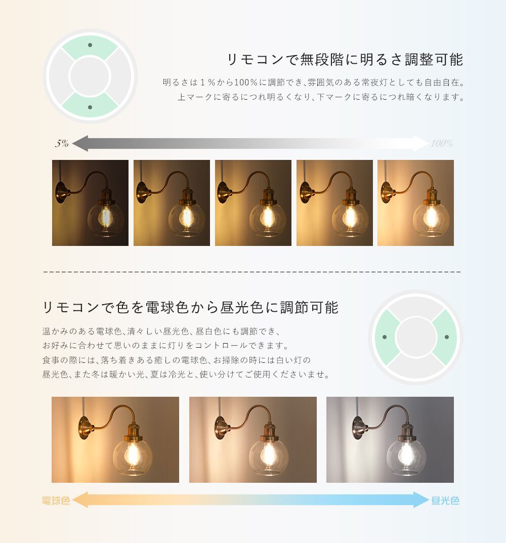 【LED電球対応】:口金E26のLED電球・フィラメント電球・電球型の蛍光灯が使用可能です。調光・調色機能付きのリモコン電球と組み合わせれば、リビングでリラックスしている時やダイニングで食事する時は温かみのある色を。読書や勉強する時は集中できる白い光に切り替えて使えます。