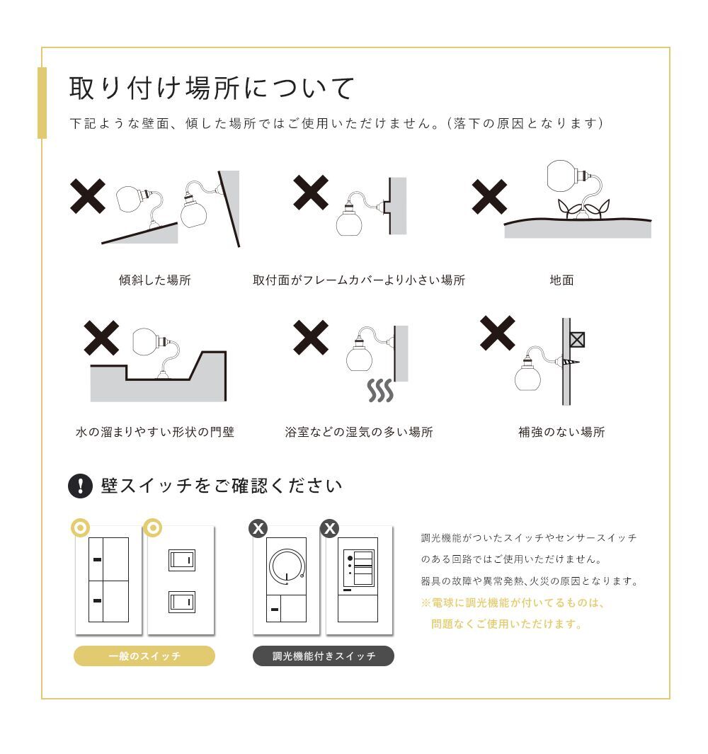 ※こちらの照明は、屋外の取付けには対応しておりません。