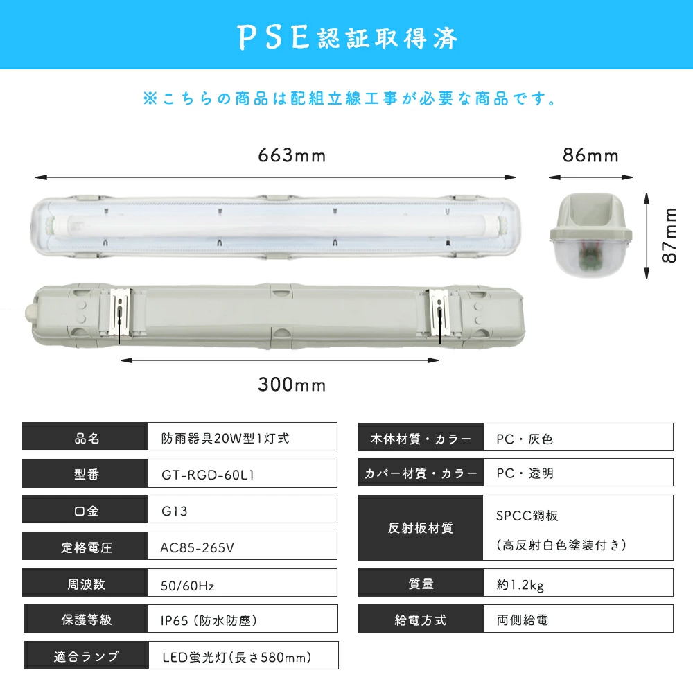 ■LED直管蛍光灯(GT-RGD-10W58)*1本(デフォルトは標準タイプです。追加料金で広配光などのタイプに変更できます。)