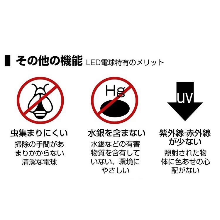 ※LED電球に対応しております照明器具にてご使用下さい。照明器具は説明書のご確認、各メーカーへ問い合わせ下さい。