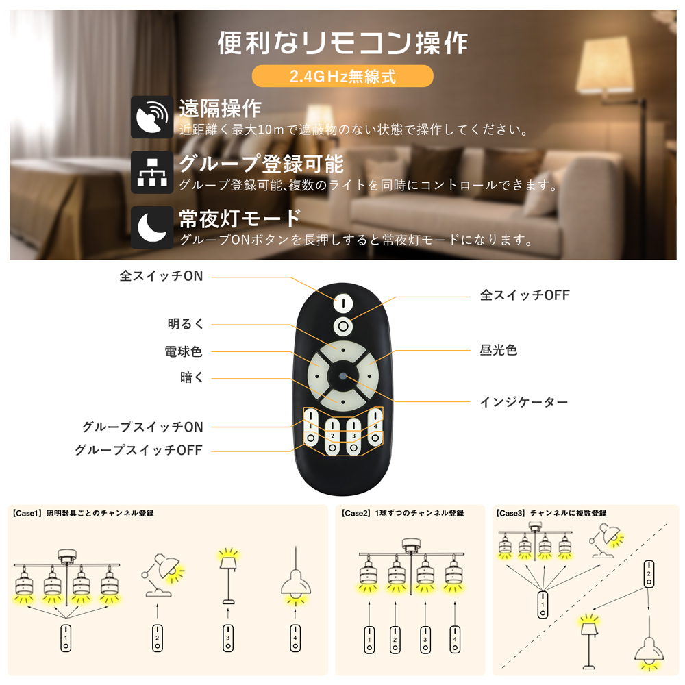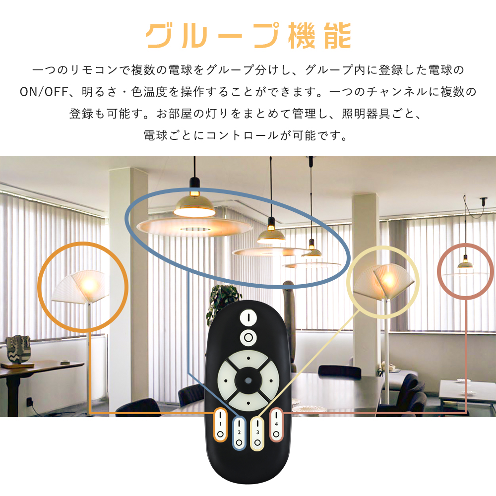 ※こちらのLED調光調色電球のご使用には弊社お取り扱っている専用リモコンが必要です。他社の類似品なら、見た目がほぼ同じでも使用できません。予めご了承ください。