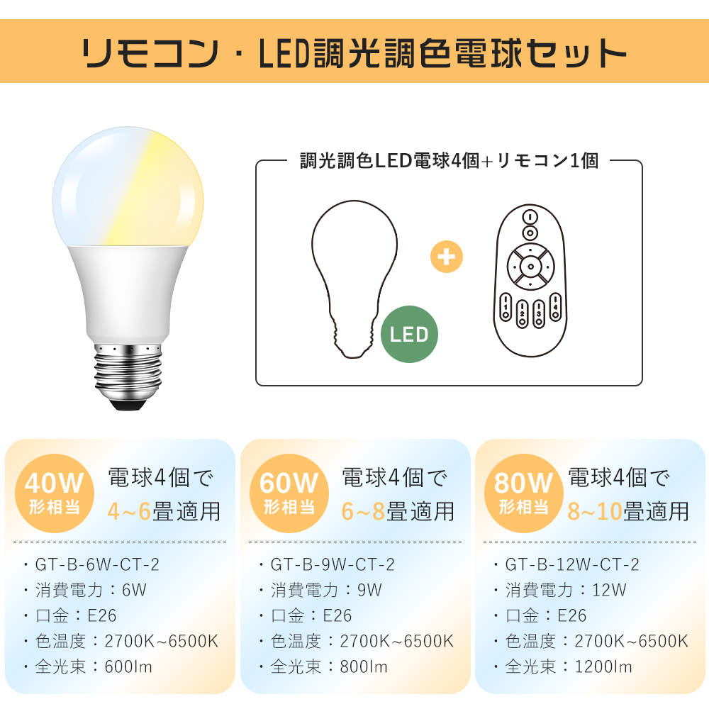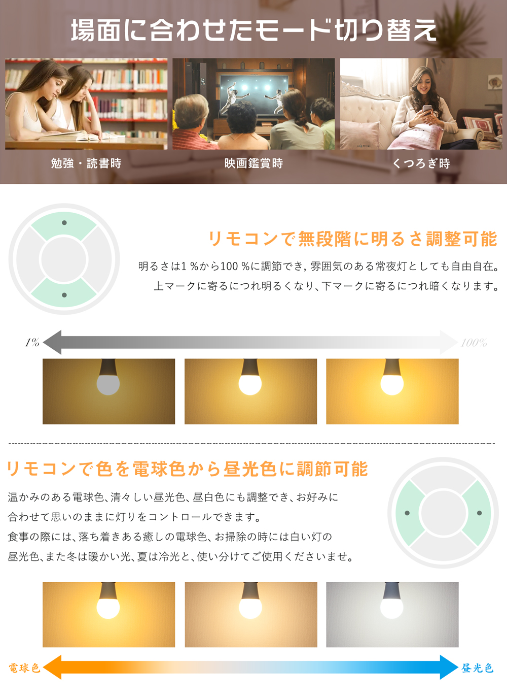 ・品名:LED 調光&調色電球(リモコン対応)