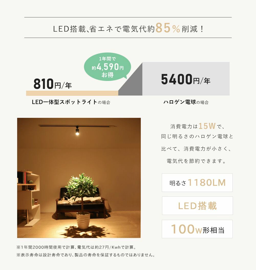 ●【LED内蔵式スポットライト】:電源ユニット内蔵の大光量一体型スポット照明。わずか9Wの消費電力でハロゲン100W相当の明るさを提供できます。お財布にも環境にも優しいアイテムです。ランプ一体なので 、電球を買う必要もなし。お届いたらすぐ利用できます。(※光源の取り替えはできません。)