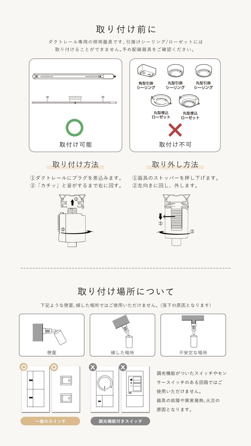 ※配線ダクトレール専用照明器具です、引っ掛けシーリングには取付できません。