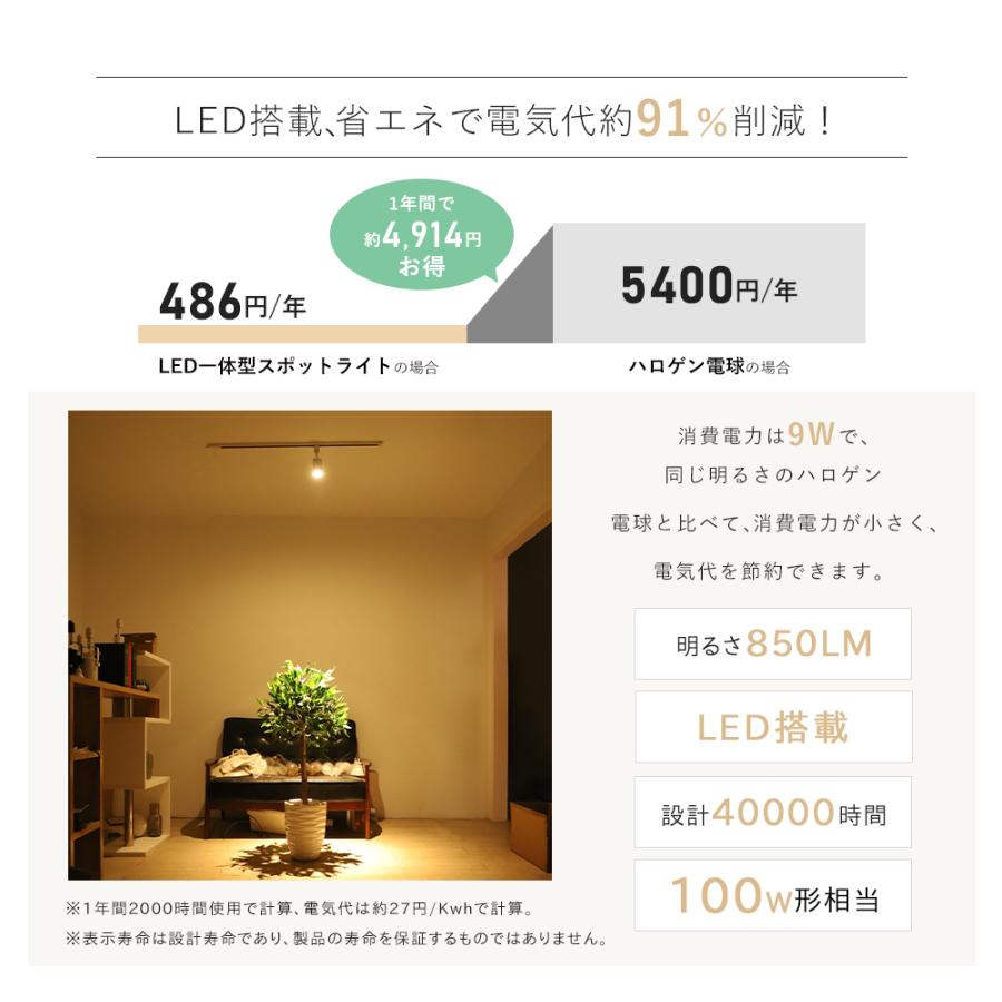 ●【LED内蔵式スポットライト】:電源ユニット内蔵の大光量一体型スポット照明。わずか9Wの消費電力でハ ロゲン100W相当の明るさを提供できます。お財布にも環境にも優しいアイテムです。ランプ一体なので 、電球を買う必要もなし。お届いたらすぐ利用できます。(※光源の取り替えはできません。)