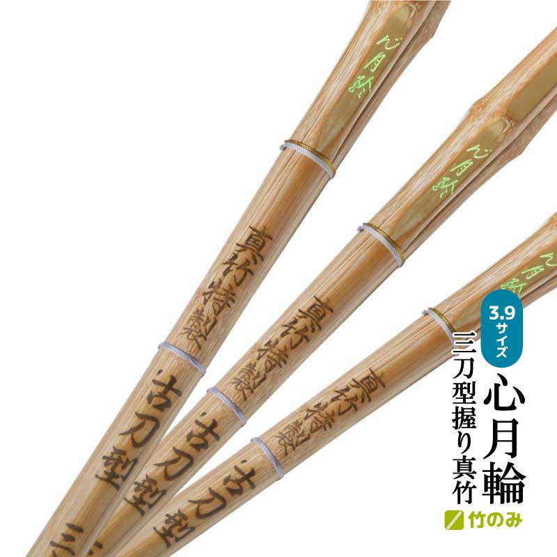 3本セット 剣道 竹刀 竹のみ 真竹特撰 古刀型 心月輪 三刀型握り 3.9男子 39 握りサイズ26~27mm 一般 しんげつりん