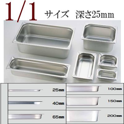 KINGO(キンゴー)ステンレス ホテルパン 11025 1/1サイズ 深さ25mm スチームコンベクションオーブン用バット スチコン(1-0113-0102)