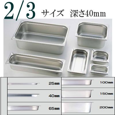 KINGO(キンゴー)ステンレス ホテルパン 23040 2/3サイズ 深さ40mm スチームコンベクションオーブン用バット スチコン(1-0113-0108)