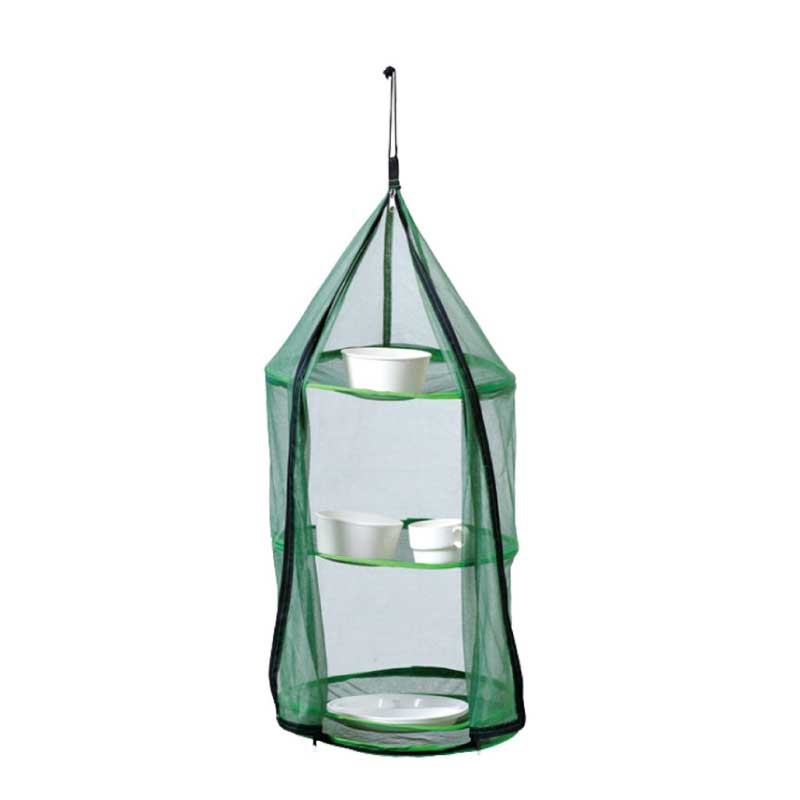 キャンプで洗った食器などを乾かすのに便利なネット。木などに掛けられる便利なフックヒモ付き。