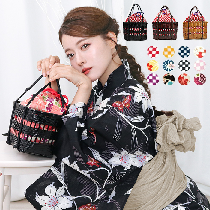 | ■《 浴衣 竹かご巾着 kg-07 スクエア型 》 ・涼しげな竹素材のかごと、かわいい和柄の巾着がセットになったかご巾着バッグです。 ちょこんとこぶりなサイズが女性らしく、かわいいデザインです。 折り畳み財布・スマートフォン・ハンカチ、ペットボトルなどが入ります。 夏祭りや花火大会の浴衣姿にぴったり。 巾着は取り外し可能。浴衣や服装に合わせて変えたりできて便利です。 かごと巾着のお色が選べます。 ※13.柄おまかせのみ巾着の色が選べませんのでご注意ください。 ■サイズ (カゴ本体) 幅:約19cm 高さ:約13cm マチ幅:約11cm 持ち手の高さ:約15cm (巾着/平置き時) 横:約28cm 縦:約25cm マチ:約11cm (カゴ Sサイズ) 幅:約17cm 高さ:約12.5cm マチ幅:約11cm 持ち手の高さ:約15cm (柄おまかせ 巾着/平置き時) 横:約22cm 縦:約16cm マチ:約13cm ■素材 本体:竹 袋表地:レーヨン 袋裏地:ポリエステル65% 綿35% 紐:ポリエステル ■カラー かご:黒/焦茶/茶(全3色) ■生産国 中国製 ■配送 宅配便 |