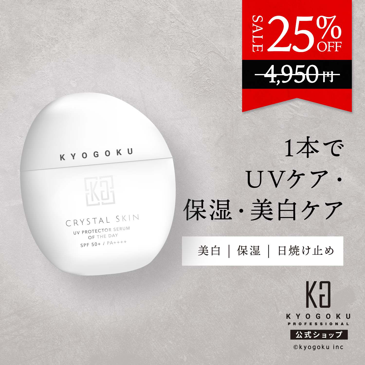 公式 25%OFF 【 KYOGOKU クリスタルスキン UVプロテクター セラムオブザデイ 】 日焼け止め 美容液 UVカット SPF50+ PA++++ 化粧下地 顔 敏感肌 日本製 KG 京極