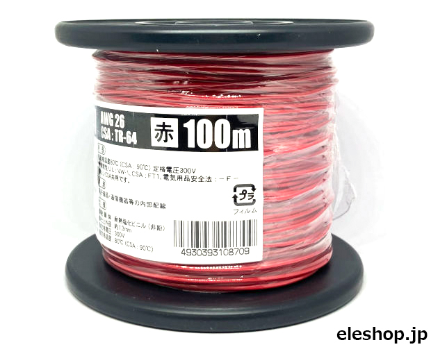 UL1007AWG26RD 耐熱絶縁ビニル電線100m巻