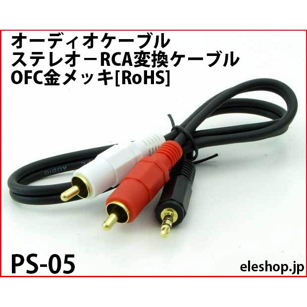 PS-05 オーディオケーブル ステレオ−RCA変換ケーブル OFC金メッキ[RoHS]