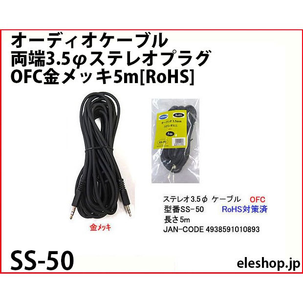 SS-50 オーディオケーブル 両端3.5φステレオプラグ OFC金メッキ5m[RoHS]