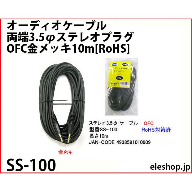 SS-100 オーディオケーブル 両端3.5φステレオプラグ OFC金メッキ10m[RoHS]