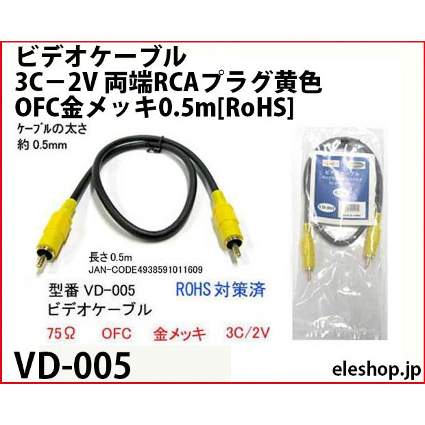 VD-005 ビデオケーブル3C−2V 両端RCAプラグ黄色 OFC金メッキ0.5m[RoHS]