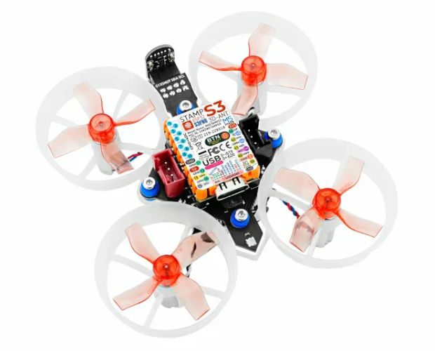 メインコントローラとしてStampS3を搭載した、プログラマブルなオープンソースドローンキットです。四つの高速コアレスモータを搭載。6軸ジャイロスコープと3軸磁力計を内蔵しており、ドローン本体の姿勢と向きを検出できます。また、気圧センサと距離センサも内蔵しているため、高度の維持や障害物回避なども可能です。このキットには、ブザー、リセットボタン、インタラクションとステータス表示用のRGB LEDが備わっています。二つのGroveコネクタがあり周辺機器を追加できます。ただし、飛行が困難になる可能性があります。