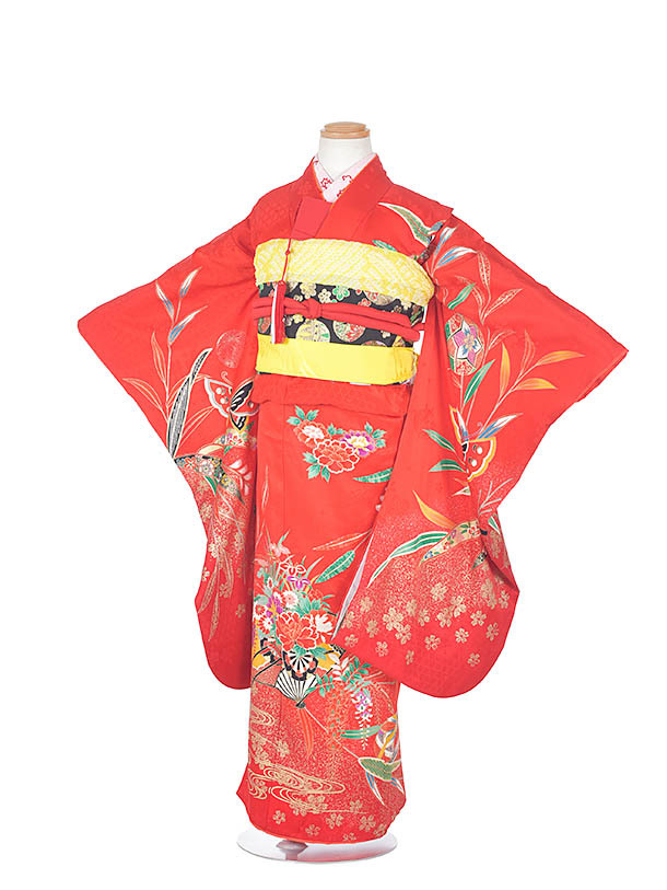 七五三 レンタル 7歳 貸衣裳 女の子 子供着物レンタル 赤着物 7歳きもの 115cm~125cm 753 7歳女児 赤扇花車 七五三セット 7歳着物 お正月 前撮り 7才 送料無料
