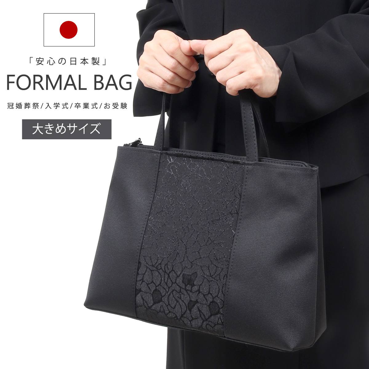 フォーマルバッグ 黒 ブラックフォーマルバッグ 大きめ 葬儀 法事 卒業式 喪服バッグ 大きいサイズ 日本製 トート型 フォーマル バッグ 6875