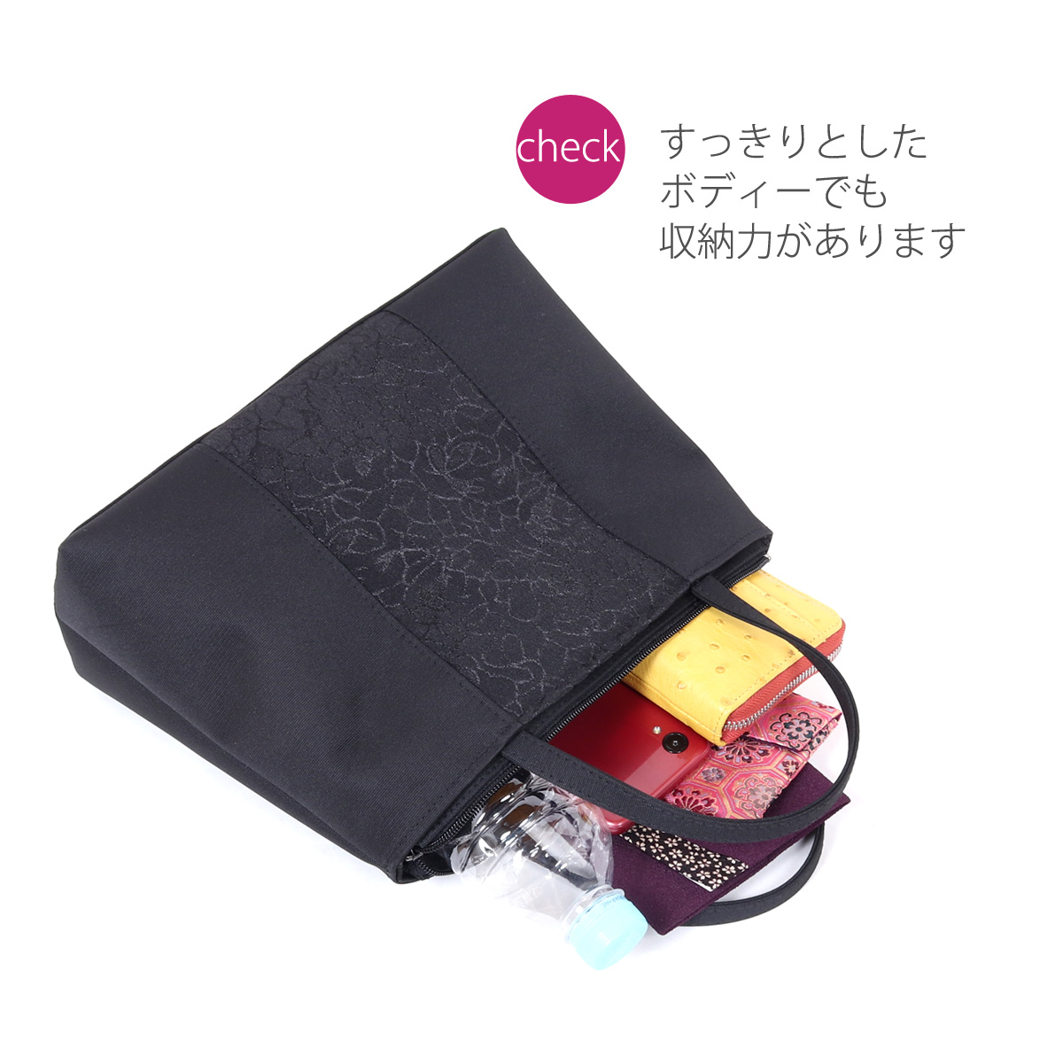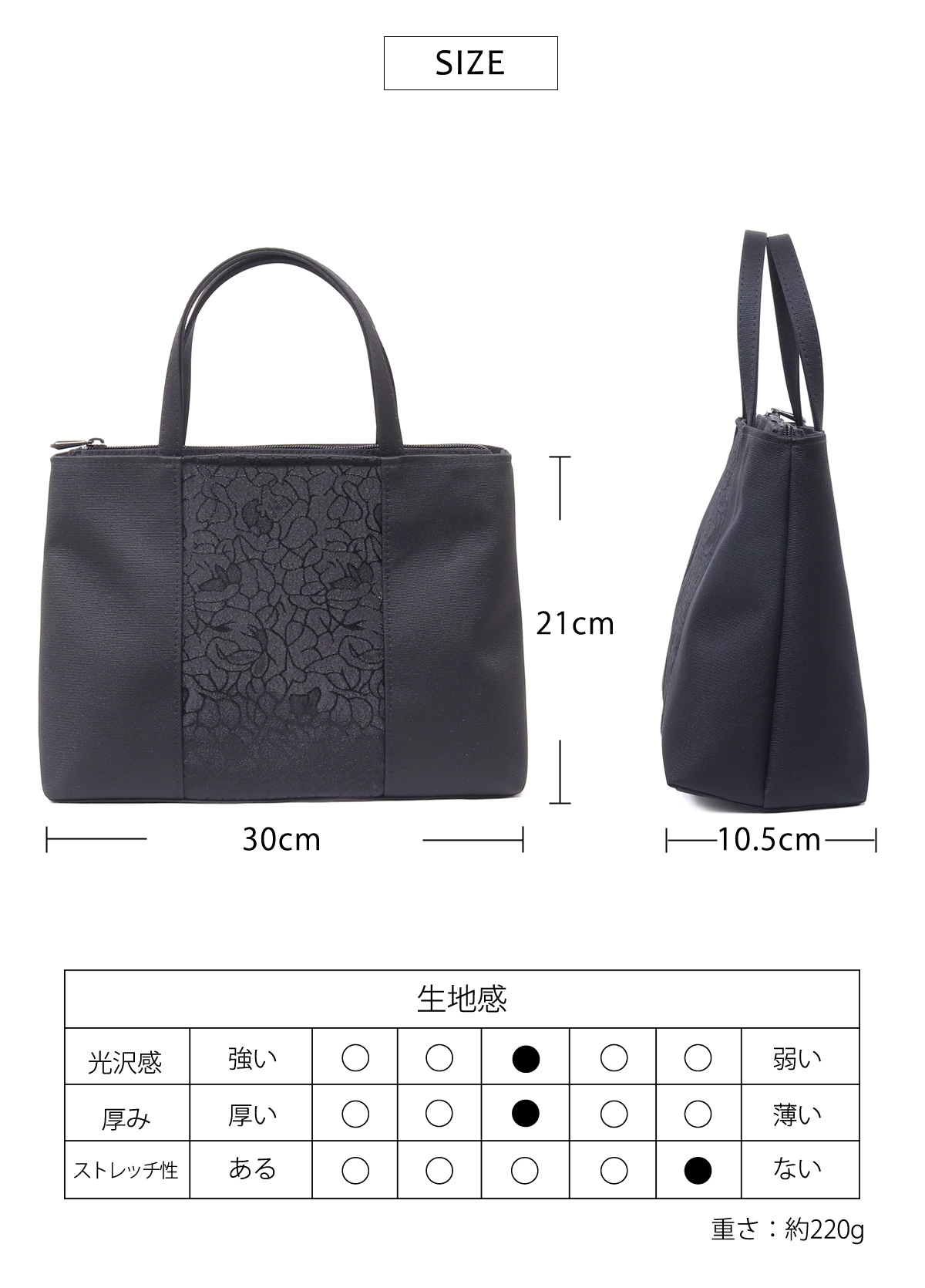 喪の席でお使いいただけるブラックフォーマル用手提げバッグです。