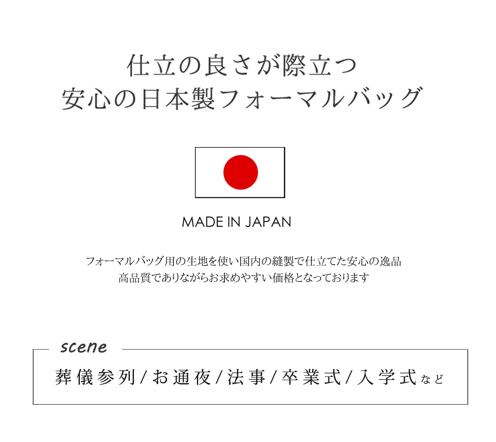葬儀、法事など冠婚葬祭のシーンだけでなく卒園式、卒業式、学校行事等のご使用にもおすすめです。