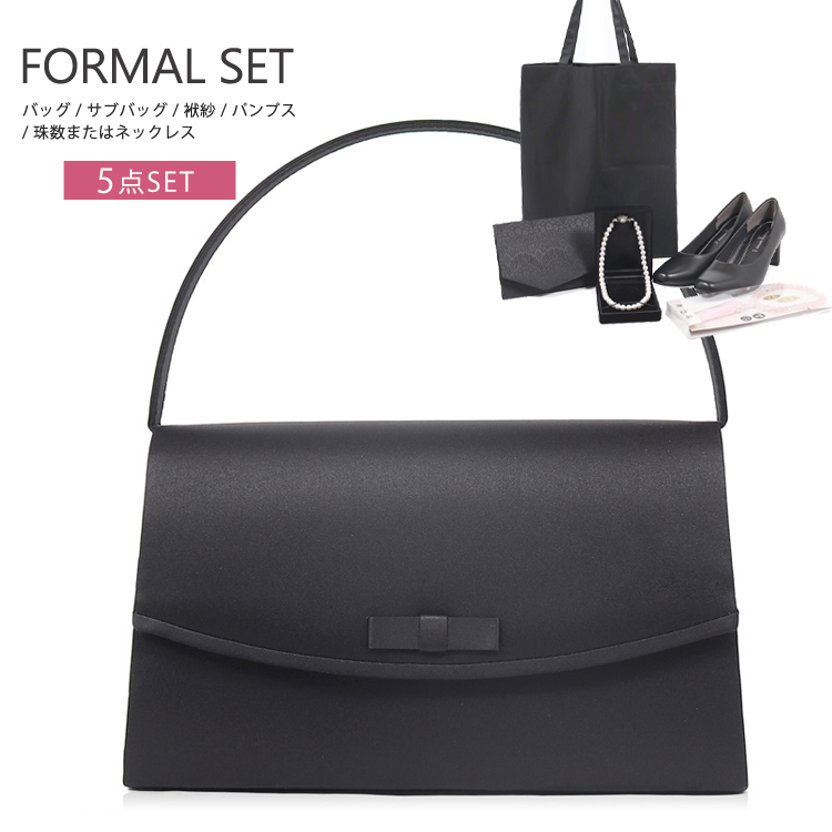 フォーマルバッグ 5点セット フォーマル バッグ 慶弔両用 小物セット パンプス 数珠 袱紗 珠数 ネックレス 喪服 バッグ 弔事 葬式 結婚式 冠婚葬祭 黒 6892set