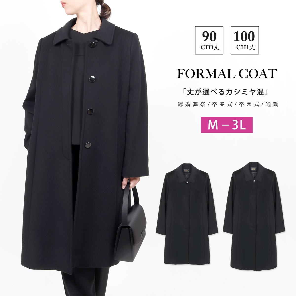 カシミヤ入り フォーマルコート レディース ブラックフォーマル コート M L LL 3L 黒 90cm丈 ショート 100cm丈 ミディアム 大きいサイズ 葬儀 結婚式 コート 273