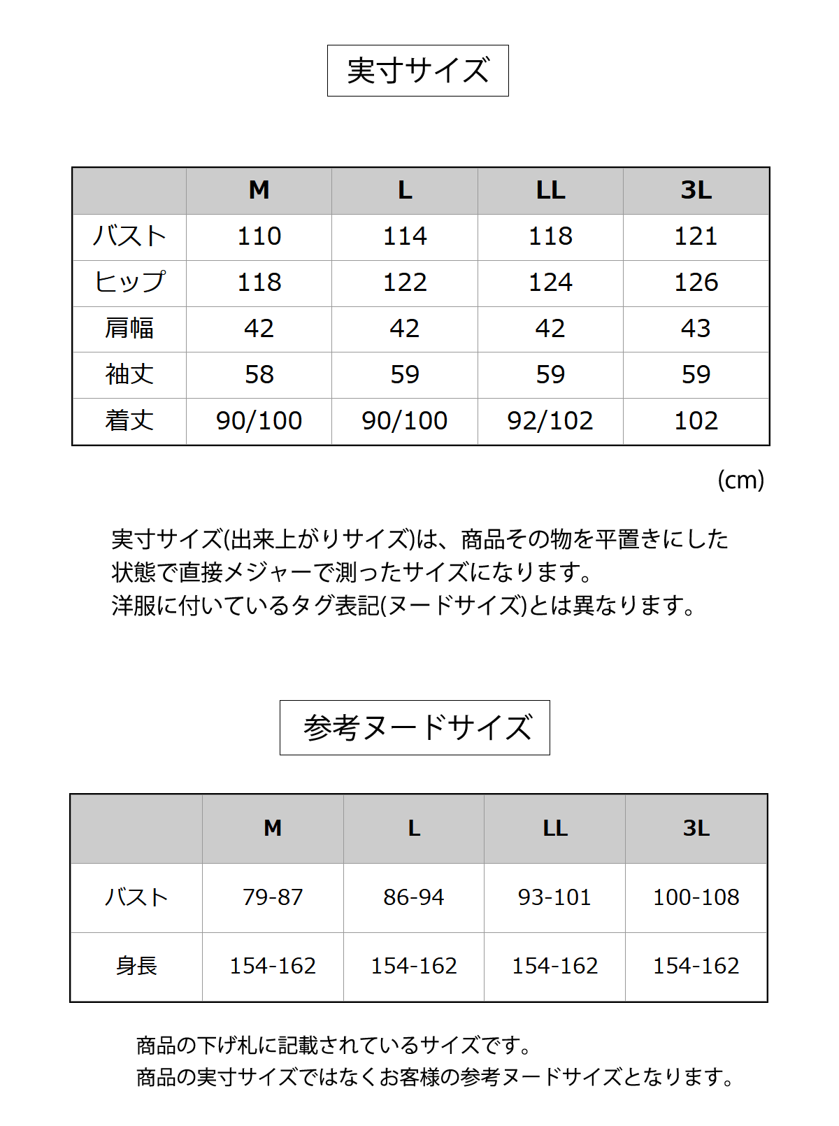 [LLサイズ]B:118 H:124 肩幅:42 袖丈:59 丈:92/102