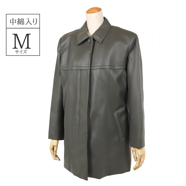 訳あり コート ジャケット 合成皮革 アウター ミセス シニア レディース モスグリーン 60代 70代 80代 196gR (M) OUTLET アウトレット