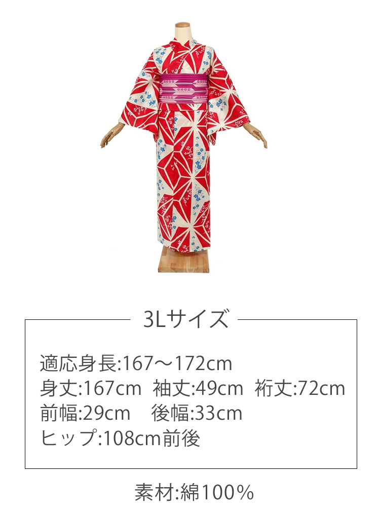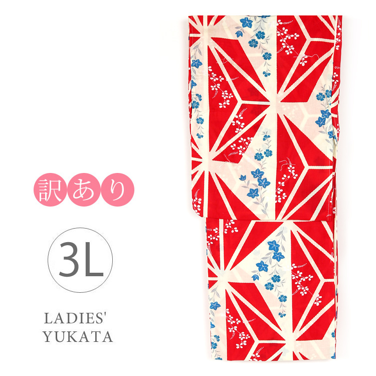 訳あり 浴衣 レディース 3L 大きいサイズ 赤 レッド ゆかた レトロ 大人 女性 浴衣 ふくよかサイズ 夏 着物 OUTLET アウトレット ly103b