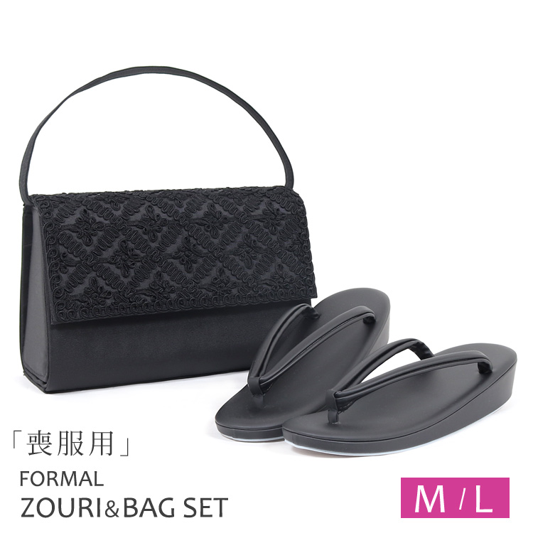 喪服用 草履バッグセット 黒 M L 喪服 礼装 フォーマル 弔事 葬式 法事 着物 草履 バッグ コード刺繍 和装 洋装 ブラックフォーマル バッグ z6413
