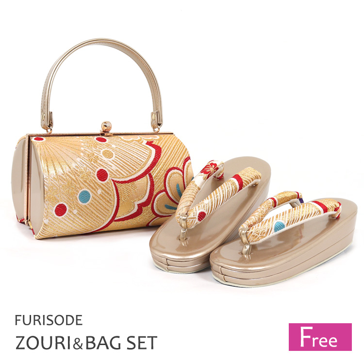 草履バッグセット 振袖用 フリー 結婚式 成人式 卒業式 謝恩会 振袖 袴 草履 バッグ セット 帯地 金 ゾウリバッグ z6873