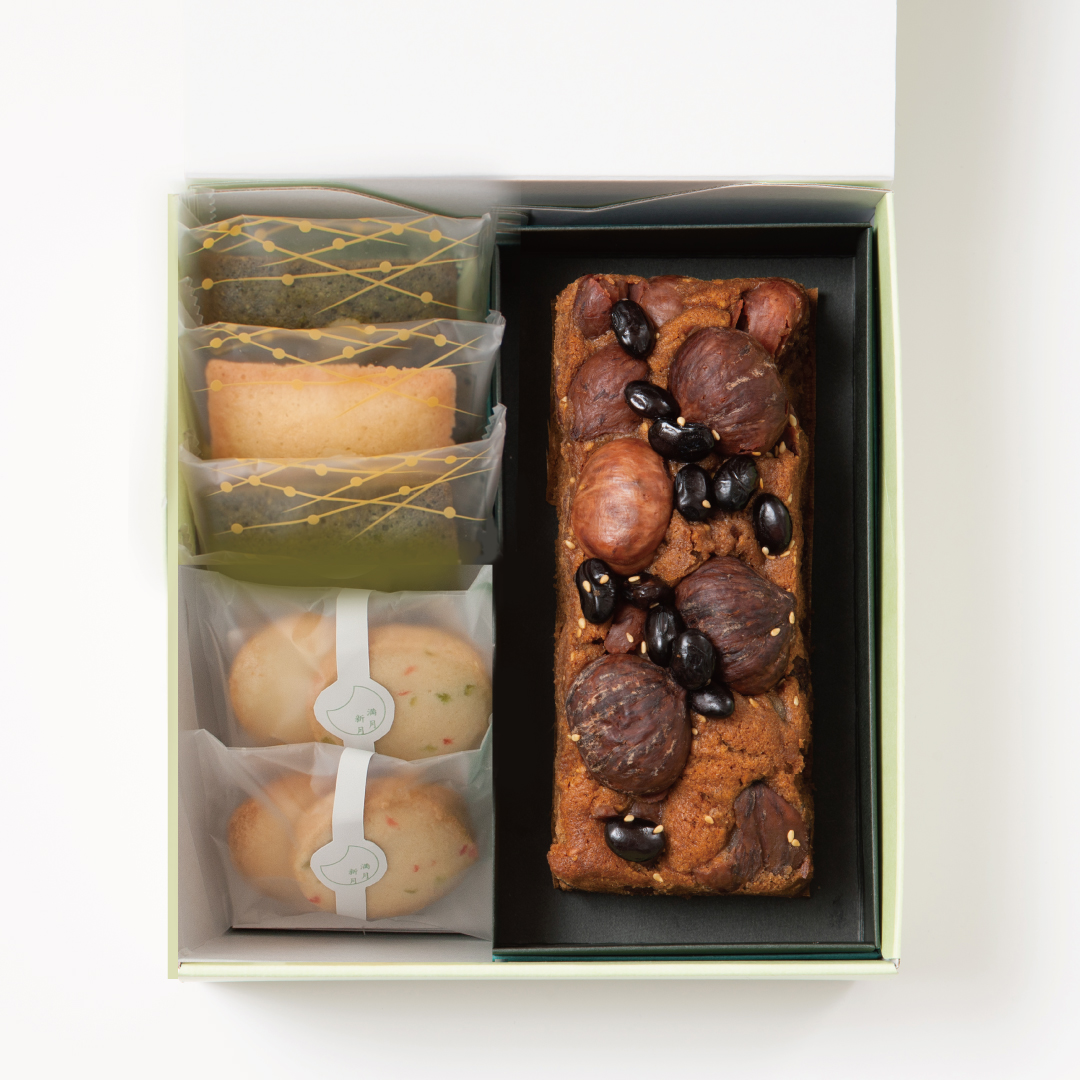 厳選された素材を贅沢に使用した、大人のパウンドケーキ「竹取物語」と「くっきぃ満月新月」「ふぃなんしぇ」のギフトセット