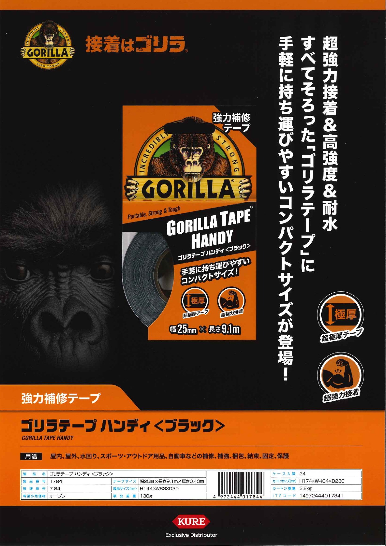 ゴリラ 強力補修テープ ゴリラテープ ハンディ ブラック 品番1784(日本総代理店:呉工業)