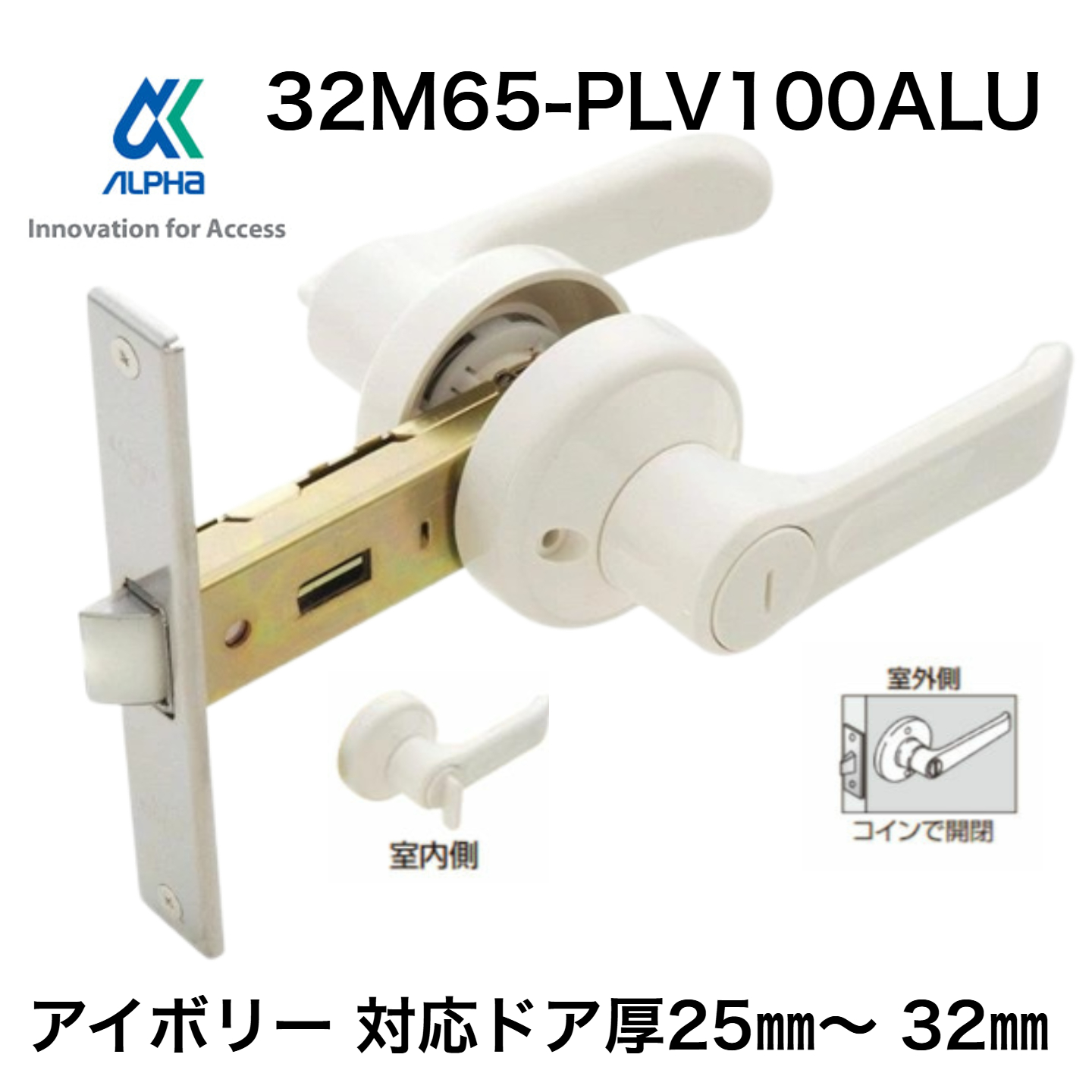 ALPHAアルファ取替錠間仕切用樹脂レバー錠(浴室用レバーハンドル)32M65-PLV100ALUアイボリーです。バックセット100mm、適応扉厚22〜32mm
