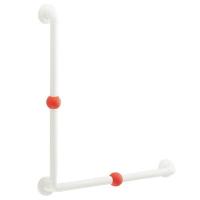 らくらく取付けでバリアフリー推奨品の浴室・トイレ・廊下・玄関などあらゆる場所に使えるL型の手すりです。