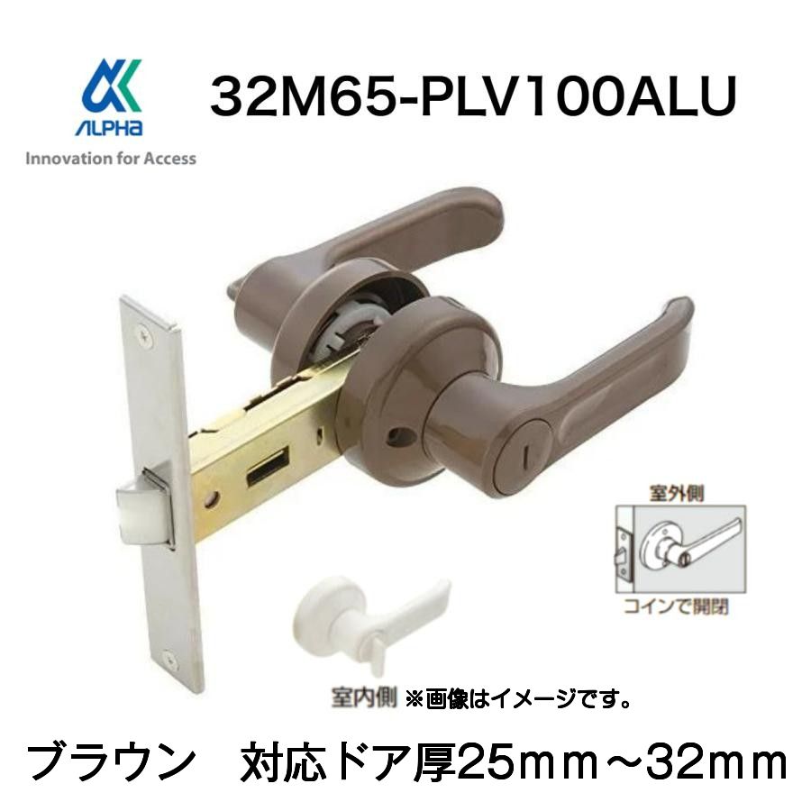 ALPHAアルファ取替錠間仕切用樹脂レバー錠(浴室用レバーハンドル)32M65-PLV100ALUブラウンです。(バックセット100mm、適応扉厚22〜32mm)