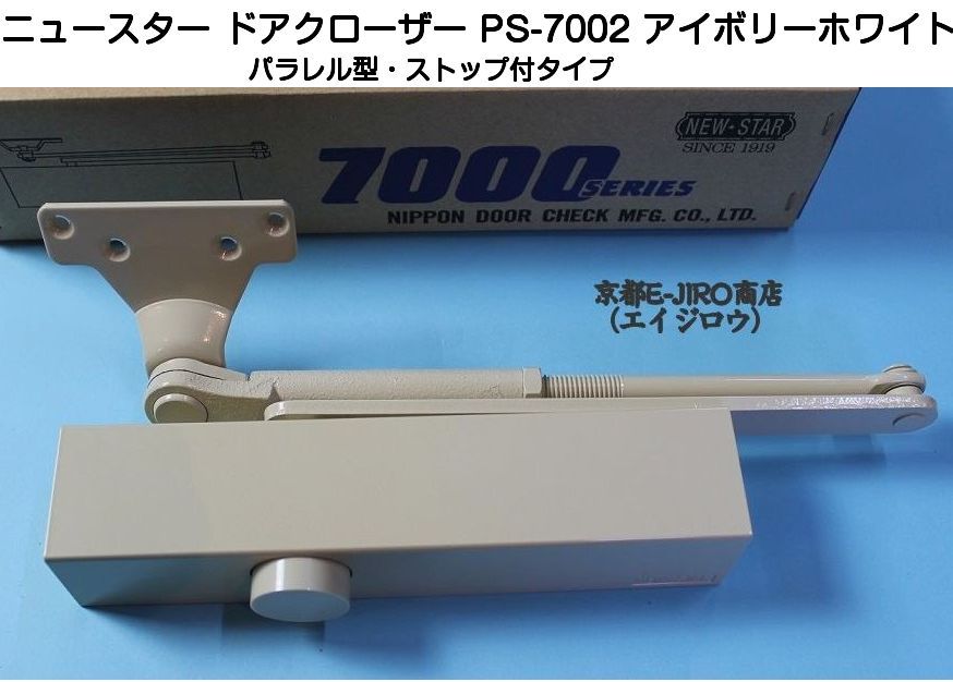 ニュースター(日本ドアチェック製造)のドアクローザーPS-7002アイボリーホワイトです。(パラレル型・ストップ付)