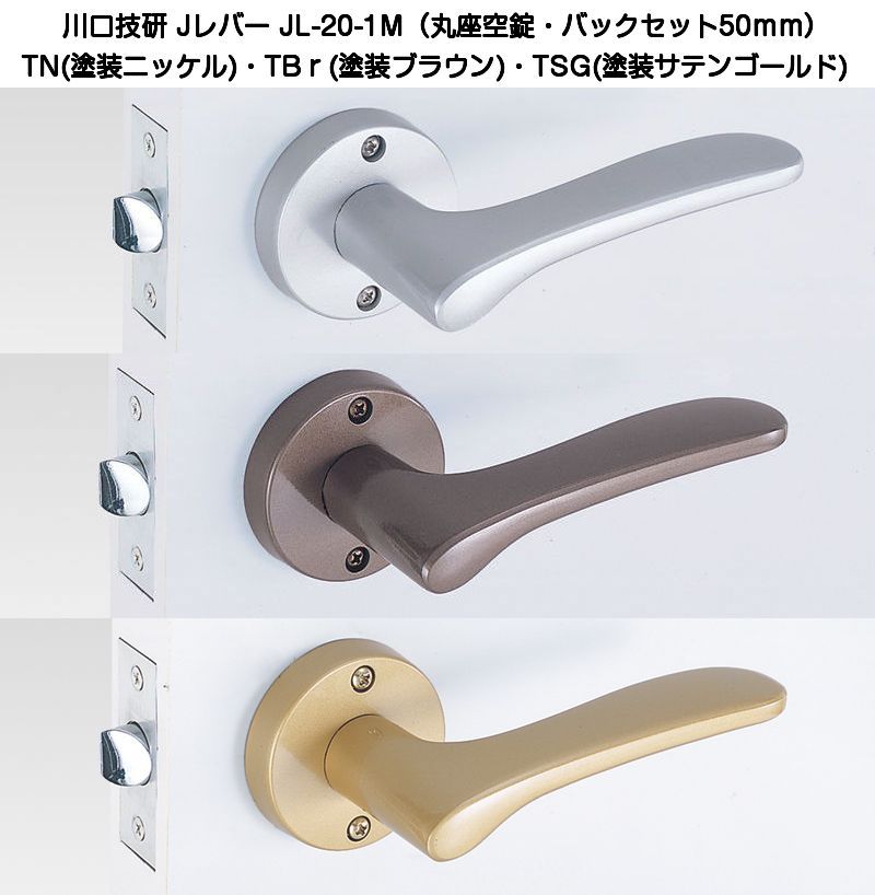 川口技研 Jレバー JL20-1M-TN/JL20-1M-TBr/JL20-1M-TSG バックセット50mm・丸座空錠タイプ(対応扉厚29mm〜45mm)